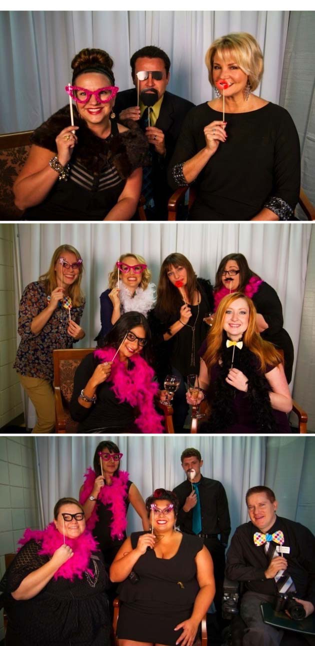 No party is complete without a photobooth and playful props. That’s Tommy Shoegler and Melissa Long (at right) in the top photo, from 21Alive. They were the event’s emcees. The final photo is some coworkers and moi (top left). We are a snazzy crew.