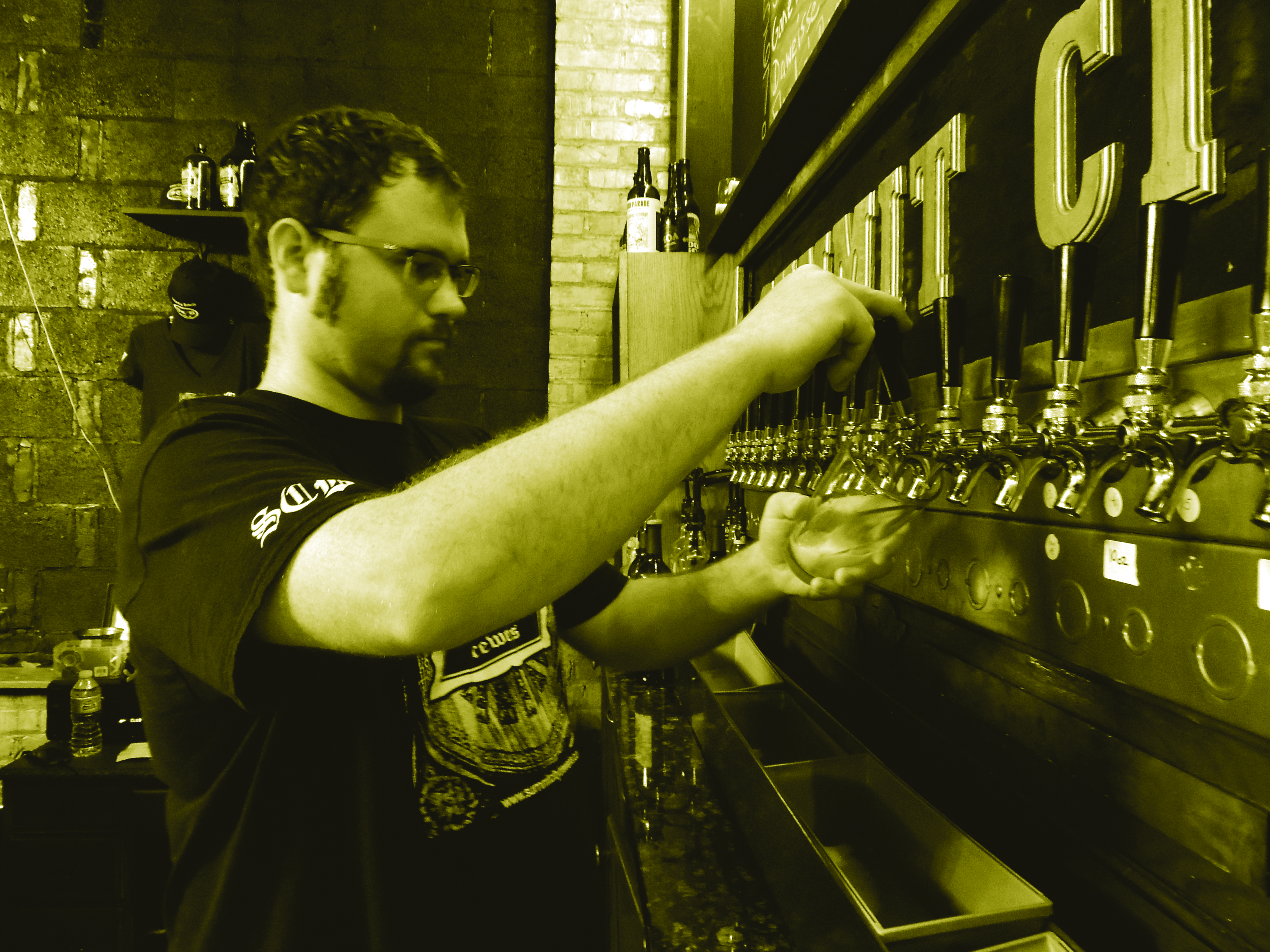 “Disgruntled Kiwi?” Alpert checks with the customer before filling the container. It’s a hoppy wheat ale.