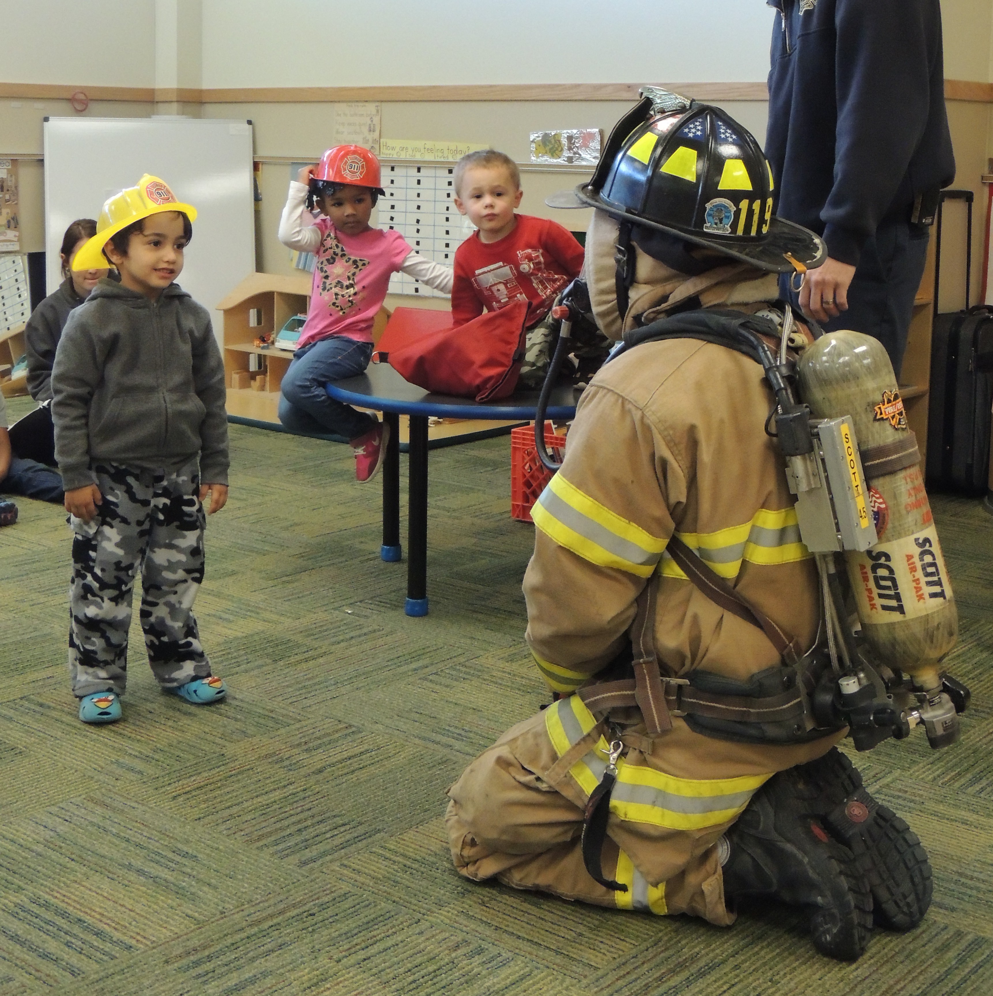 Fitzgerald and his firefighter colleague, Matt Seftick, made their appearance courtesy of an invitation by Lois Kaufmann-Hunsberger, the center’s faculty coordinator and preschool teacher.