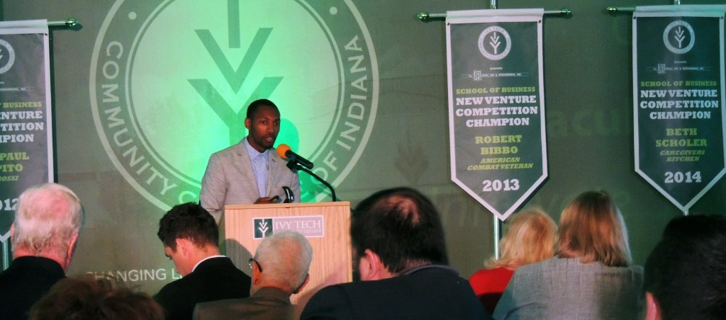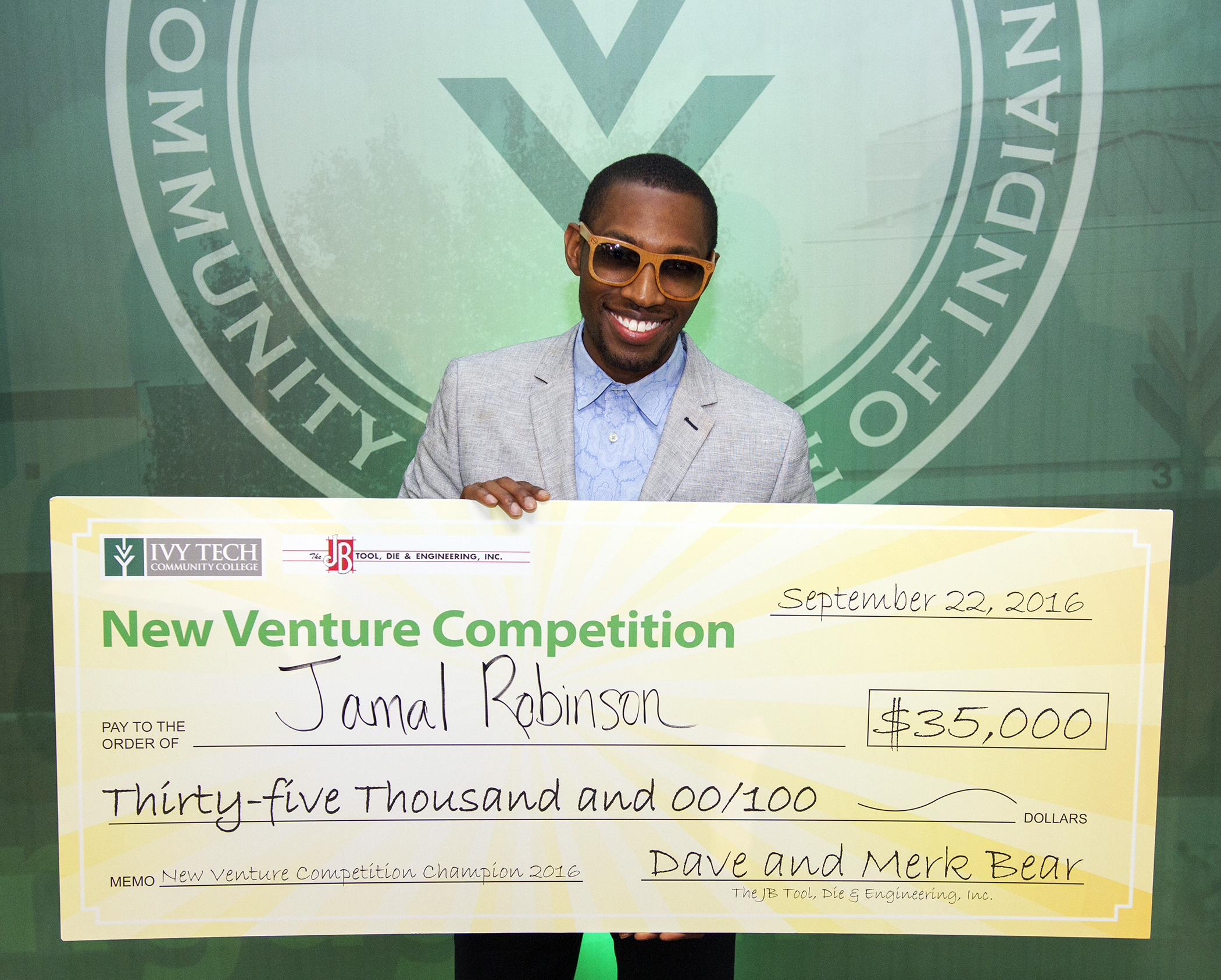 Jamal Robinson has been named the sixth champion of Ivy Tech Community College Northeast’s New Venture Competition, which took place Thursday evening on Ivy Tech Northeast’s Coliseum Campus. He won $35,000 in capital for his business, DESIAR Eyewear.
