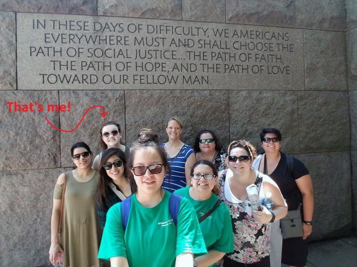 This quote and picture that we took at the Franklin Delano Roosevelt Memorial is important to me. There is so much hate in the world, and by choosing the path of social justice, we choose love and support. The subject of this photo moves me because this is what our whole trip is about: We are learning so much about how people with different backgrounds or races are treated so differently than others. This shows that social justice can make this a better world.