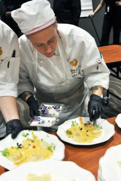 The dinner and menu will be prepared by Hospitality Administration students and graduates who won the European Competition in January. Their prize was a trip to Europe to study the culinary arts. The meal is created based upon their trip.