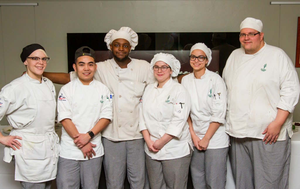 Culinary students prepared a meal with an appetizer; an entrée with a protein, vegetable, and starch; and a dessert. Baking students prepared items including plated chocolate and fruit desserts, yeast bread and rolls, and a decorated cake.