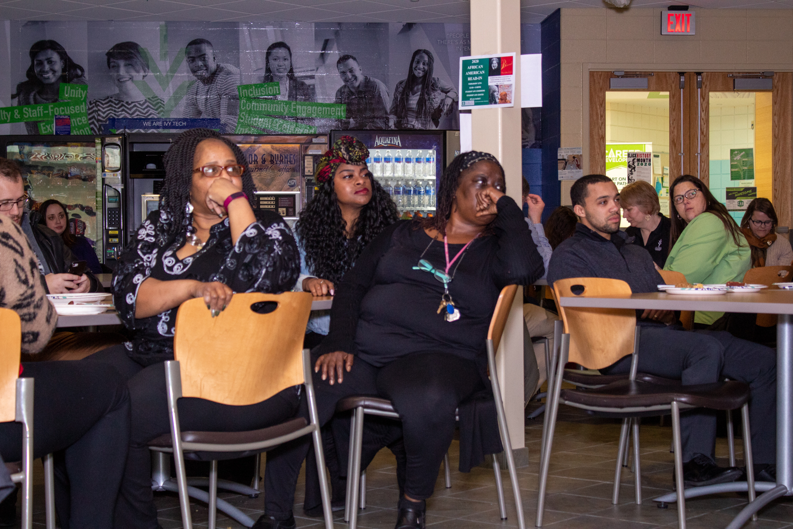 The month kicked off with a public screening of “The Hate U Give” (2018). The film is an emotional depiction of the black protagonist’s struggles with racism, identity, and her subsequent involvement in activism after witnessing her black friend slain by police officers. The lunch-and-learn screening on Feb. 5 welcomed more than forty active participants, many of whom stayed behind to discuss their real-life experiences of passive racism and “code switching.”