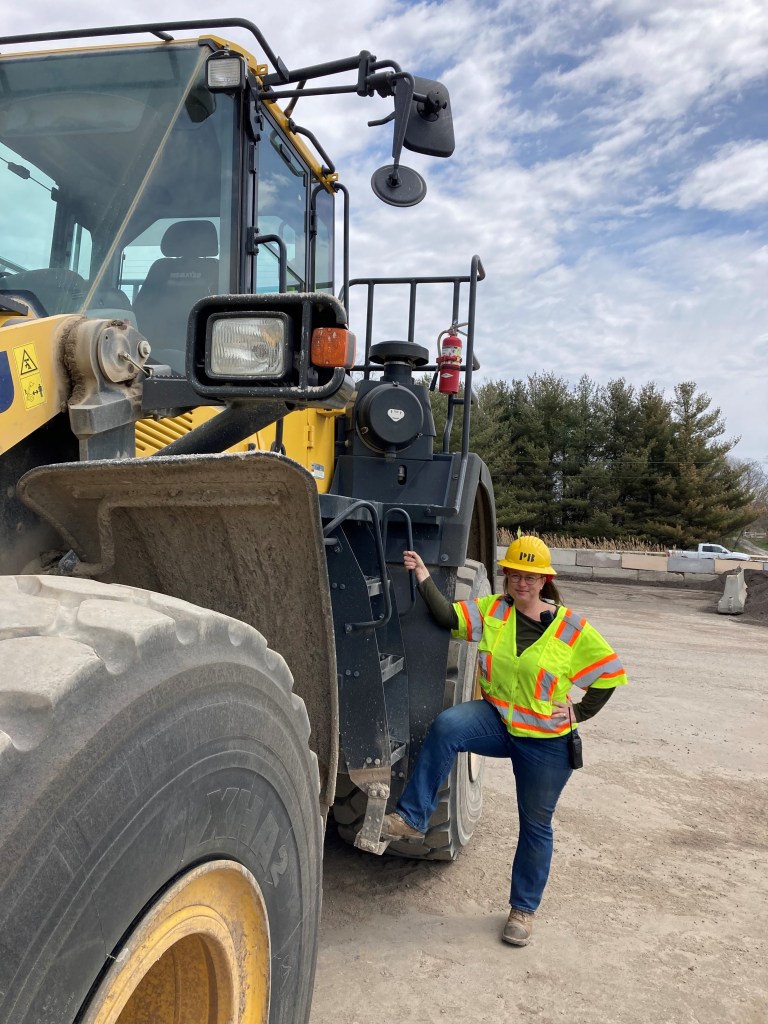 But after experiencing two recessions and having a child, Amber made the difficult decision to hang up her artist’s hat and trade it for a hard hat. Her family owns a construction company and gave Amber a job with financial stability. She’s worked the past thirteen years in road construction, mostly feeding an asphalt or gravel plant.