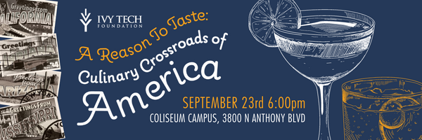 Ivy Tech Community College’s Fort Wayne campus will host their annual A Reason to Taste fundraiser in September. This year’s theme is Culinary Crossroads of America, a food lover’s road-trip featuring a culinary adventure spanning American cuisine from the Pacific Northwest to New England—with several memorable side trips along the way.
