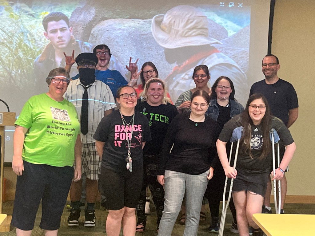 Saylor: “I have always had a ton of fun at our parties and events. As for a favorite memory, I think our disability awareness event we had in March is one of my favorites. It happened to be my birthday, and we all had fun teaching others about disabilities that people experience.”