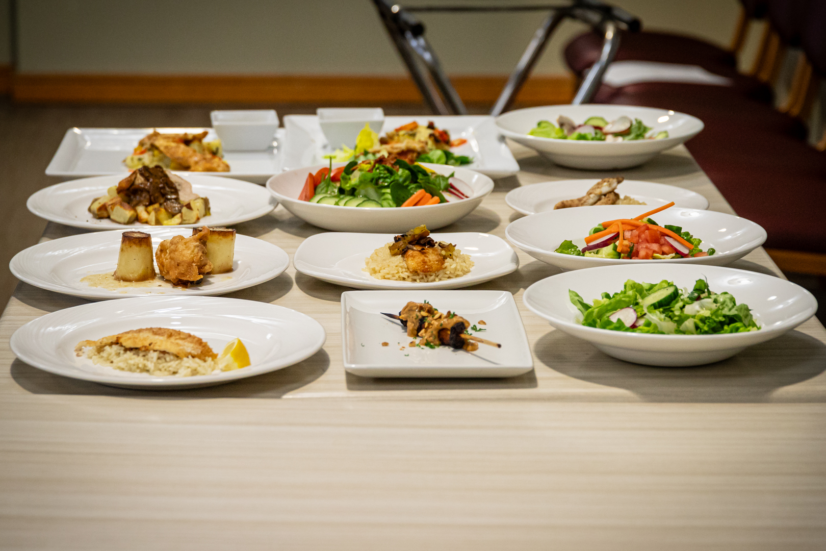 Culinary students prepared a meal with, a salad, an appetizer, and an entrée with a protein, vegetable, and starch. Students had to prepare both chicken and Dover sole. Baking students prepared items including plated chocolate and fruit desserts, yeast bread and rolls, and a decorated cake.