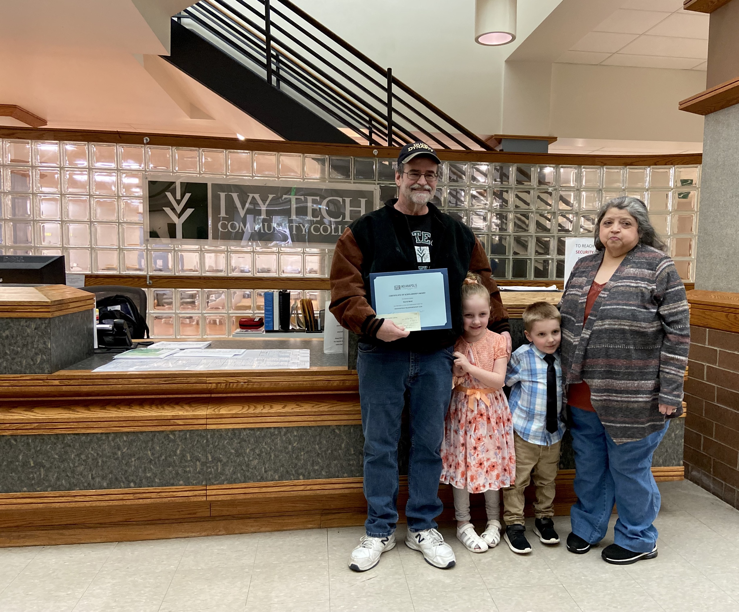 On Monday, March 18, Ivy Tech Fort Wayne supply chain management student David Reid was joined by his family as he accepted his scholarship from the Indianapolis Transportation Club (ITC).