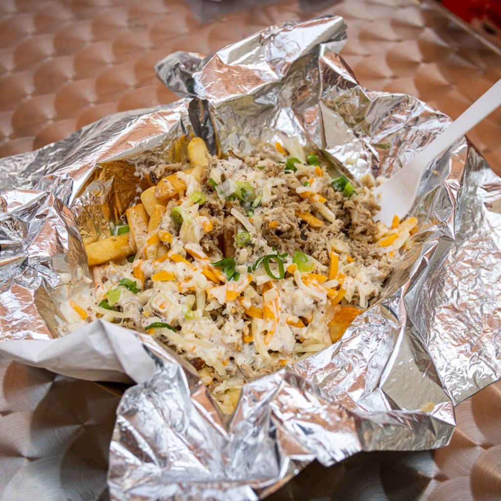 | Alabama Poutine Pulled Pork, Pepper Jack Cheese, White BBQ, Green Onion | $8 |