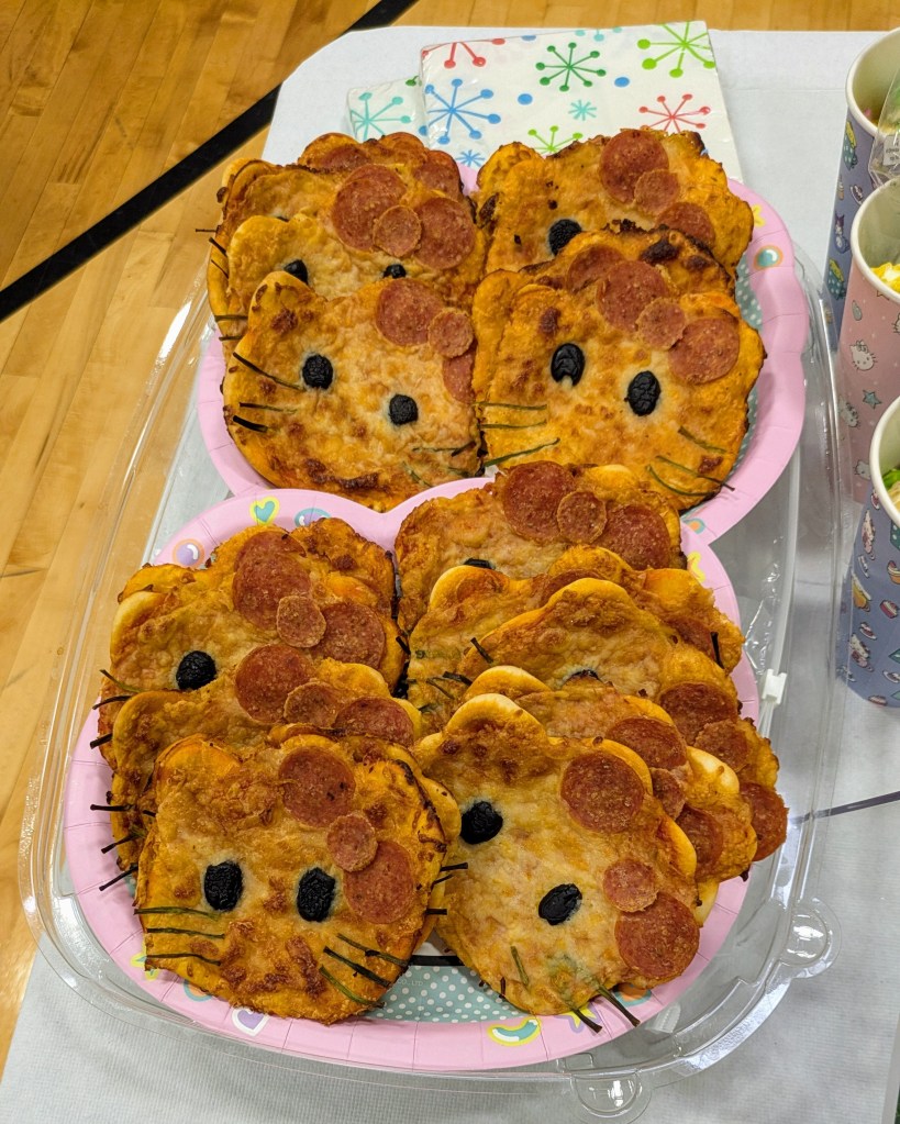 A long line formed around Allen’s sparkly Hello Kitty sweet and savory dishes. Her theme was dedicated to her granddaughter and included cake, cupcakes, melons, and pizzas.
