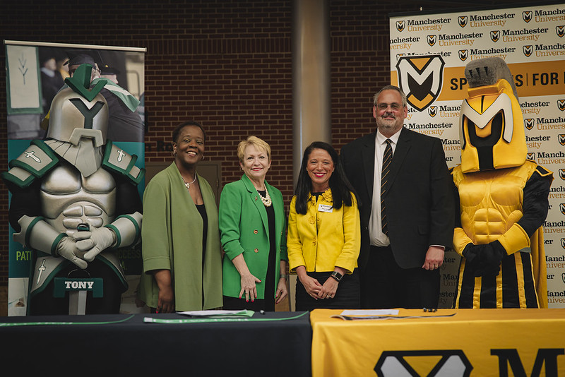 Ivy Tech President Dr. Sue Ellespermann and Manchester President Dr. Stacy Young were joined by Ivy Tech Fort Wayne Chancellor Dr. Kim Barnett-Johnson and Manchester’s Vice President of Strategic Initiatives and Corporate Partnerships Leon Letter to introduce the new transfer pathway.