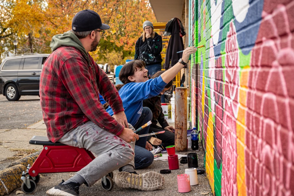 With guidance from Salyers and support from fellow instructor Jared Applegate, students spent several weeks bringing the mural to life—brushstroke by brushstroke. The project quickly became a neighborhood event, drawing enthusiasm and encouragement from the Lake Avenue community. Passing cars honked in support, market customers stopped to offer kind words, and even local children added their own brushstrokes to the design.